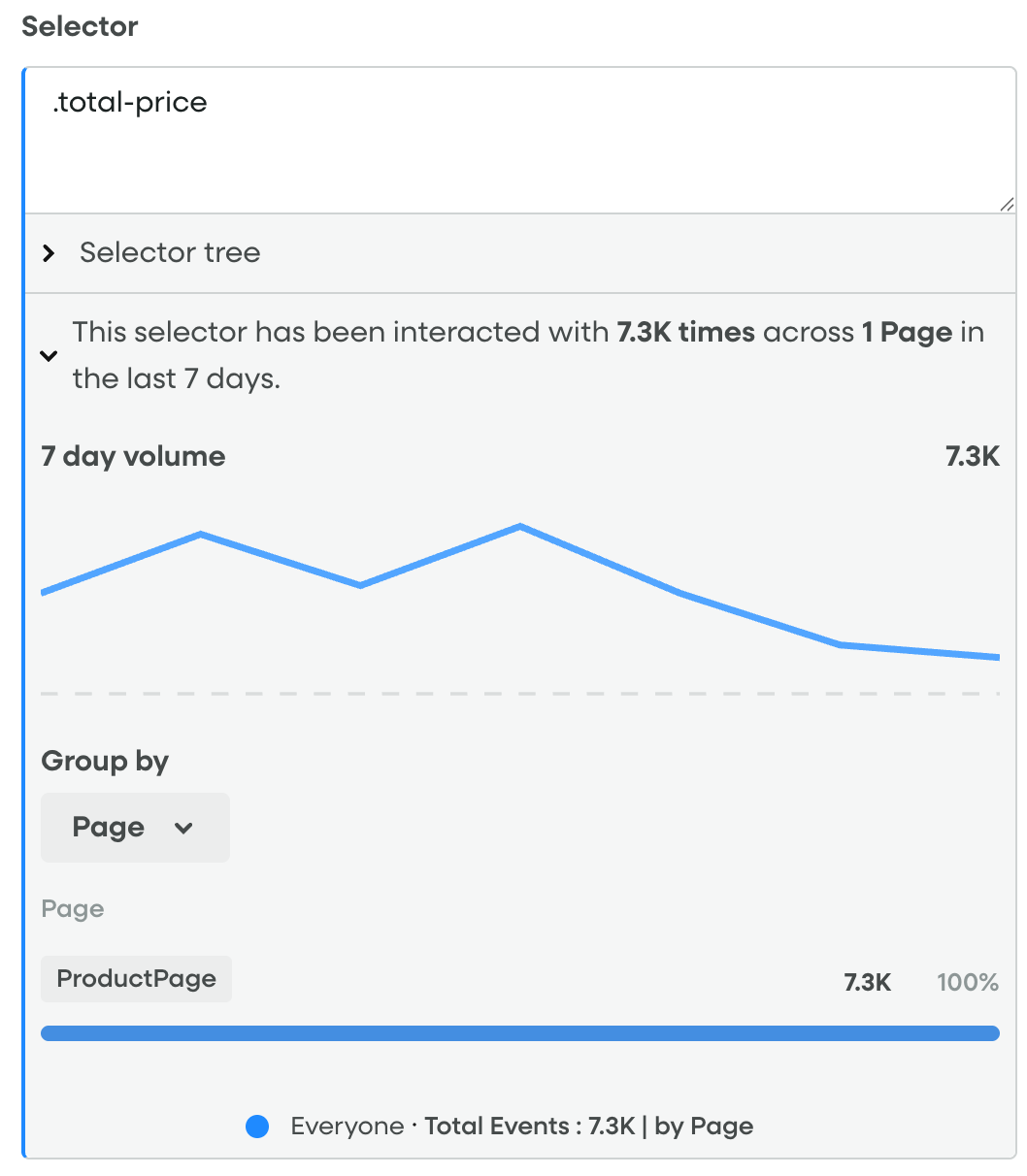 When creating an element, Fullstory can fine-tune and simplify the CSS selector.