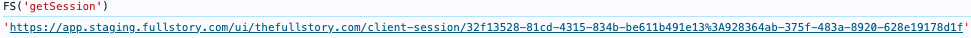 First, let’s start by attempting to retrieve your session link in the console of your browser’s developer tools. Assuming Fullstory is deploying correctly on the page, this should allow you to easily retrieve your own session link at the time of the capture.