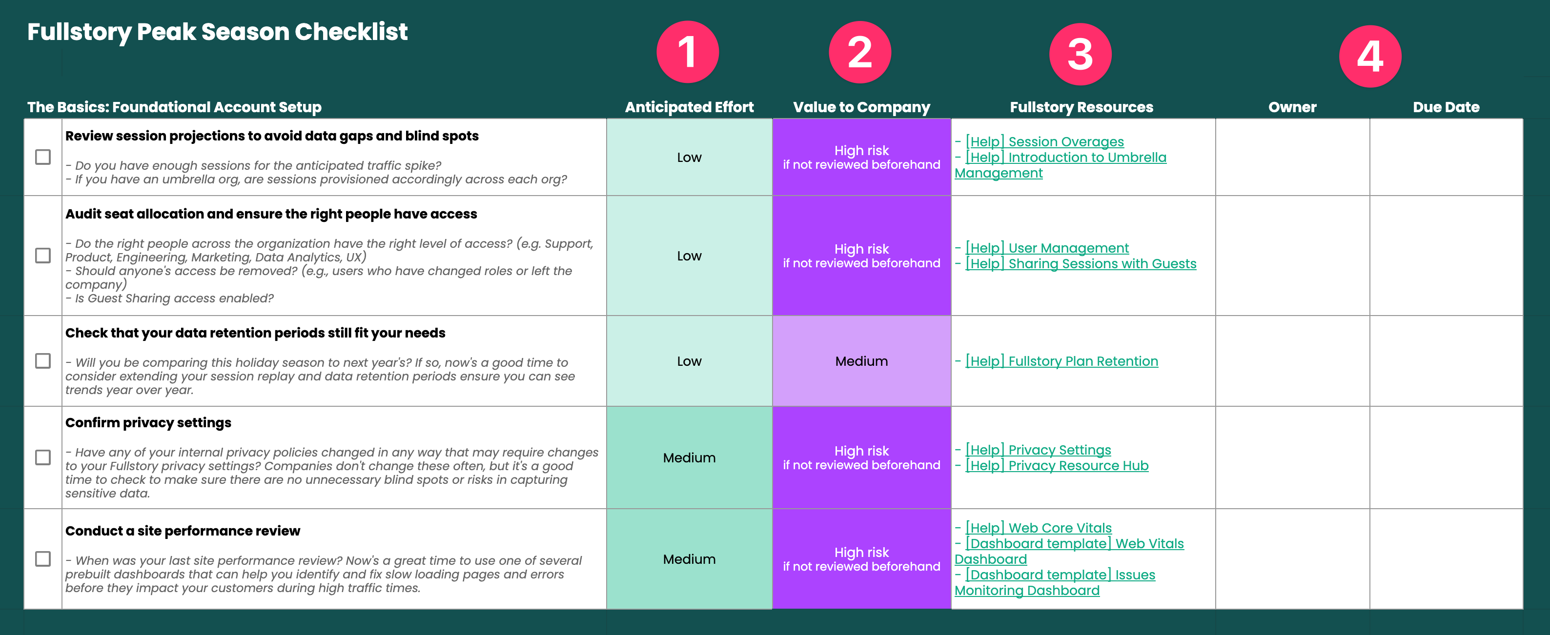 The peak season shopping rush is your biggest opportunity. This checklist ensures you're ready to capture it. We'll guide you through the essential steps within Fullstory and your organization to mitigate risks, optimize the customer experience, and drive revenue.