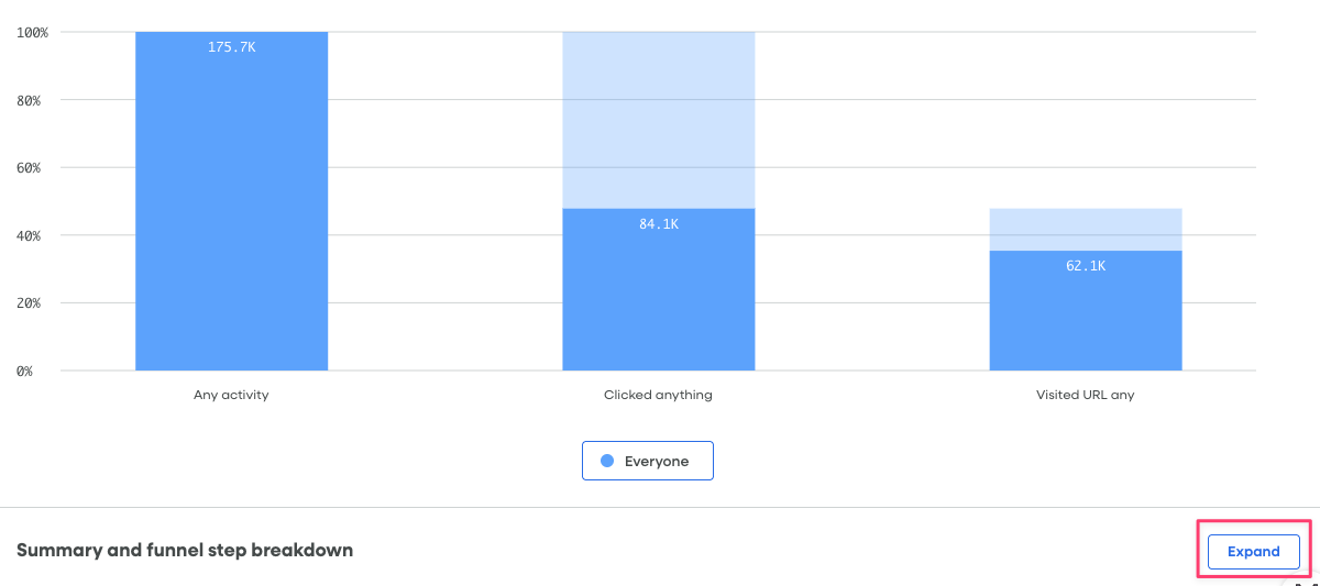 When you want to dig into the data for each step in your funnel you should be able to click the expand button under the chart, like this:
